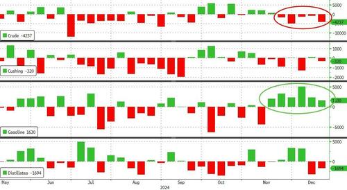 Cushing stocks fell back near ‘tank bottoms’ once again (lowest since Oct 2023)…
